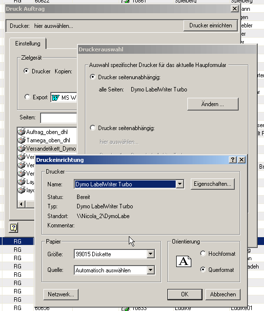 Druckerschachtsteurung - Konfigurationsbeispiel Etikettendrucker |