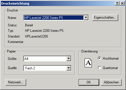Druckerschachtsteurung - Konfigurationsbeispiel HP Laserjet Druckerart, Papierquelle usw. werden von Lexware in einer lsp-Datei gespeichert. |